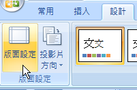 開啟一個新建的檔案,工具列選擇⌈設計⌋點選⌈版面設定⌋