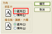 同時在右邊⌈投影片方向⌋選項,選擇⌈直向⌋