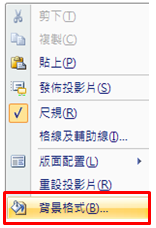 在頁面點選右鍵,選擇⌈背景格式⌋