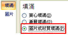 再來選擇⌈填滿⌋,點選⌈圖片或材質填滿⌋